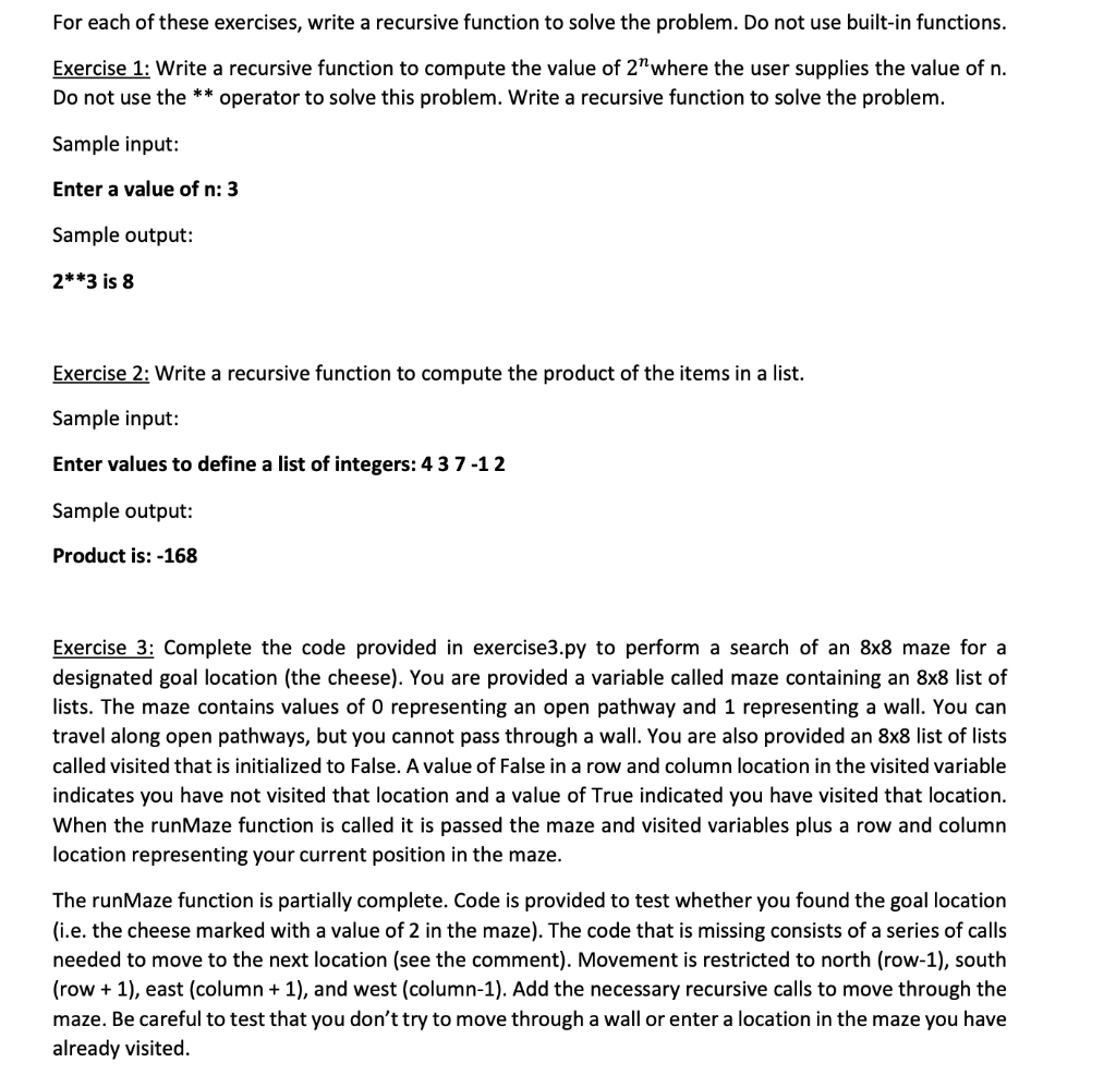 Solved For each of these exercises, write a recursive | Chegg.com