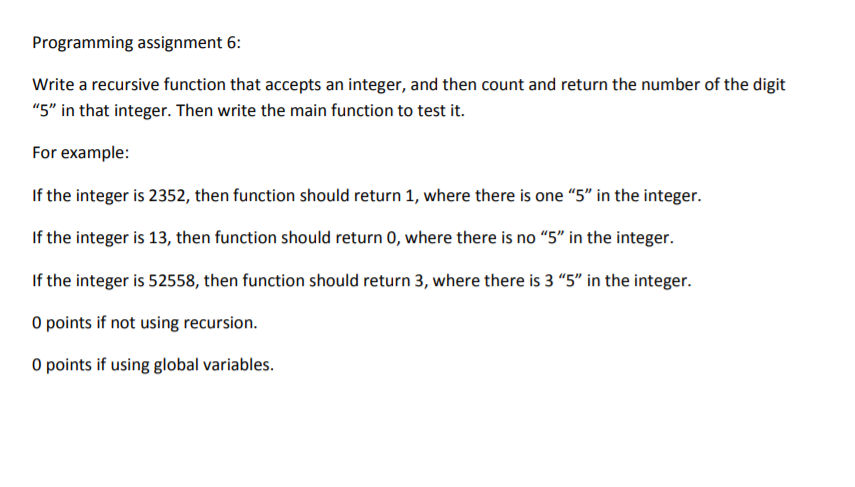 Solved Programming assignment 6: Write a recursive function | Chegg.com