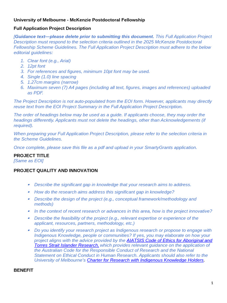 McKenzie Fellowship - Full Application - Project Description - Template ...