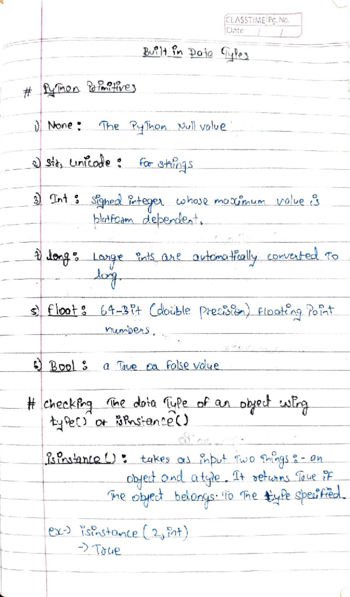 Python Notes: Data Types and Operations Overview (CLASSTIME) - Studocu