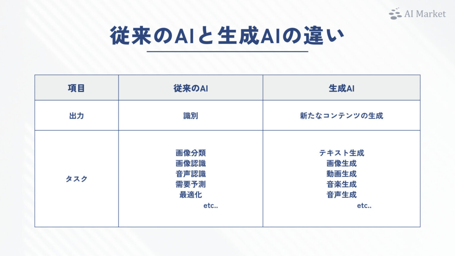 生成AIと従来のAIの違いは?仕組みや活用方法をわかりやすく解説 | 生成AI社内活用ナビ - ChatGPTやAzure OpenAI ...