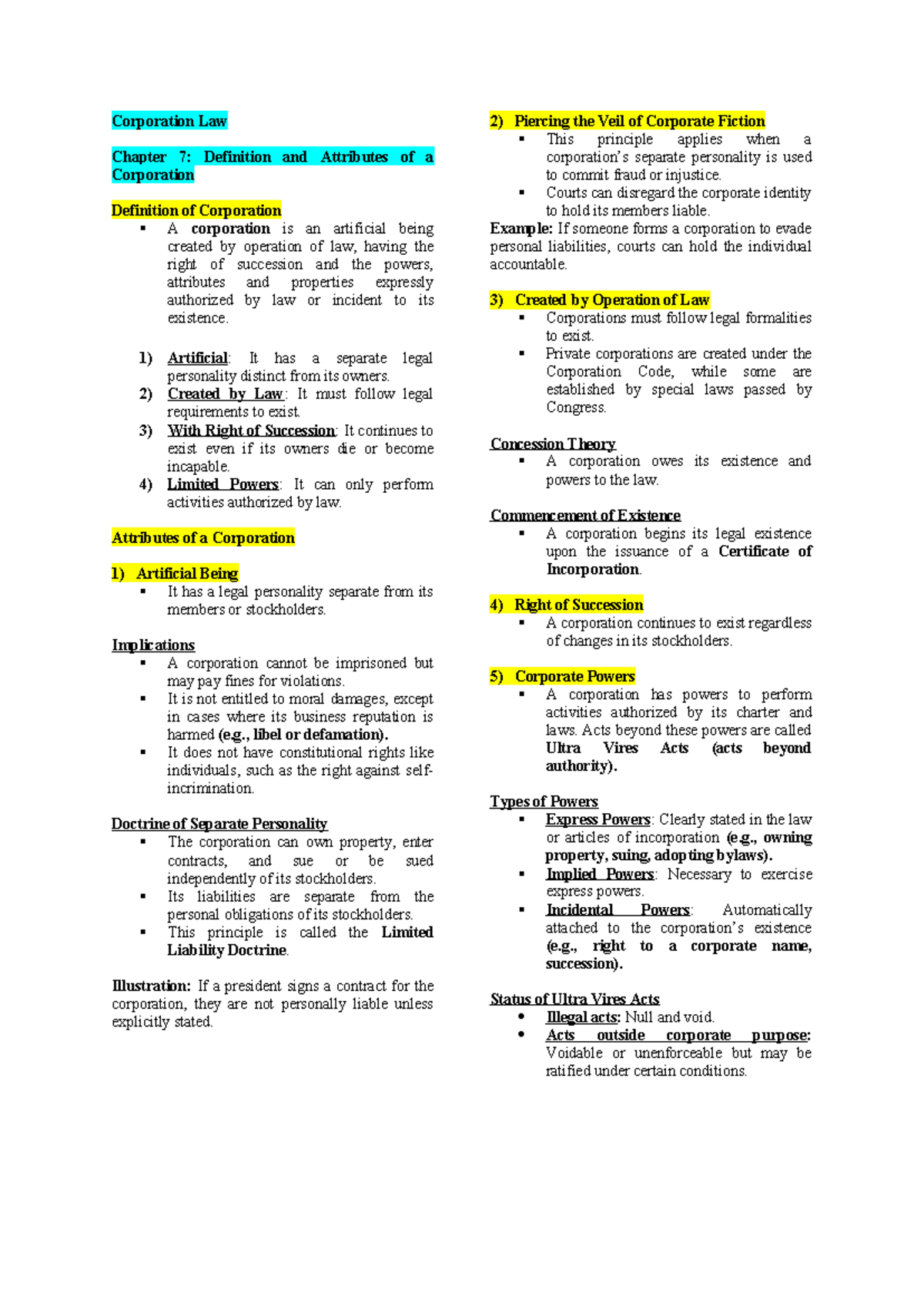 AE 2 Corporation Law: Chapter 7 - Definition & Attributes of ...
