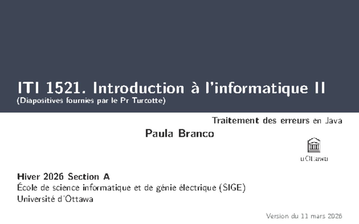 ITI 1521. Étude de Cas sur le Traitement des Erreurs en Java - Studocu