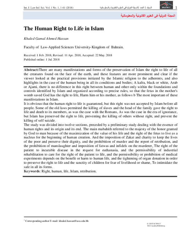 (PDF) حق الإنسان في الحياة في الإسلام The Human Right to Life in Islam