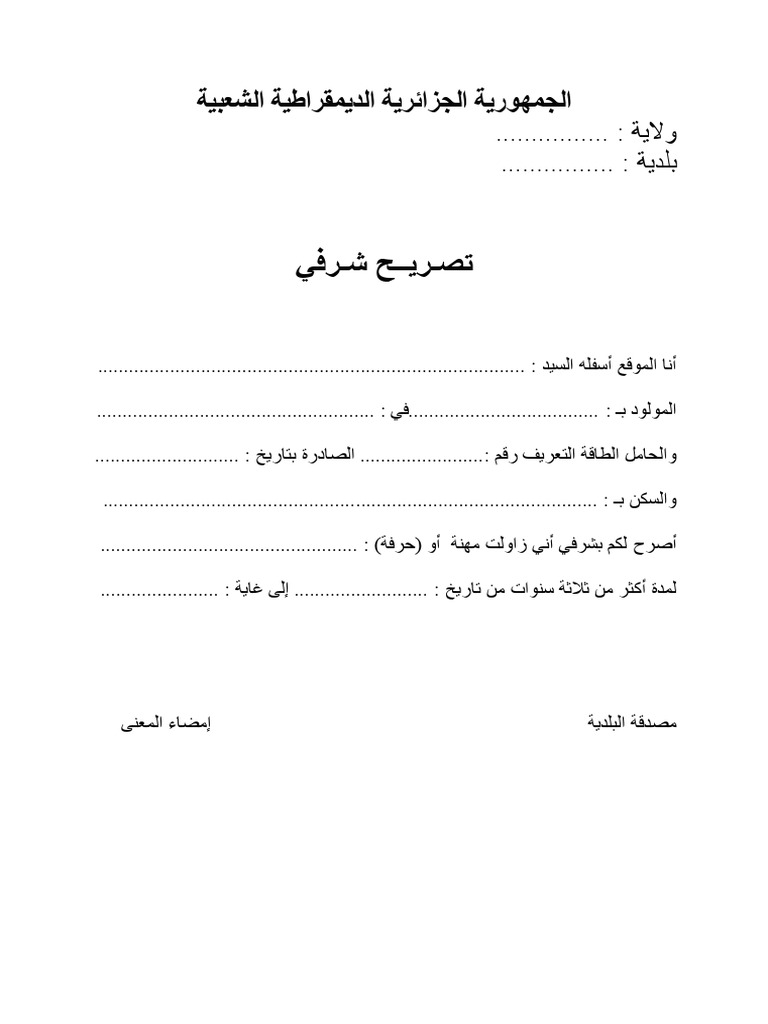 تصريح شرفي | PDF