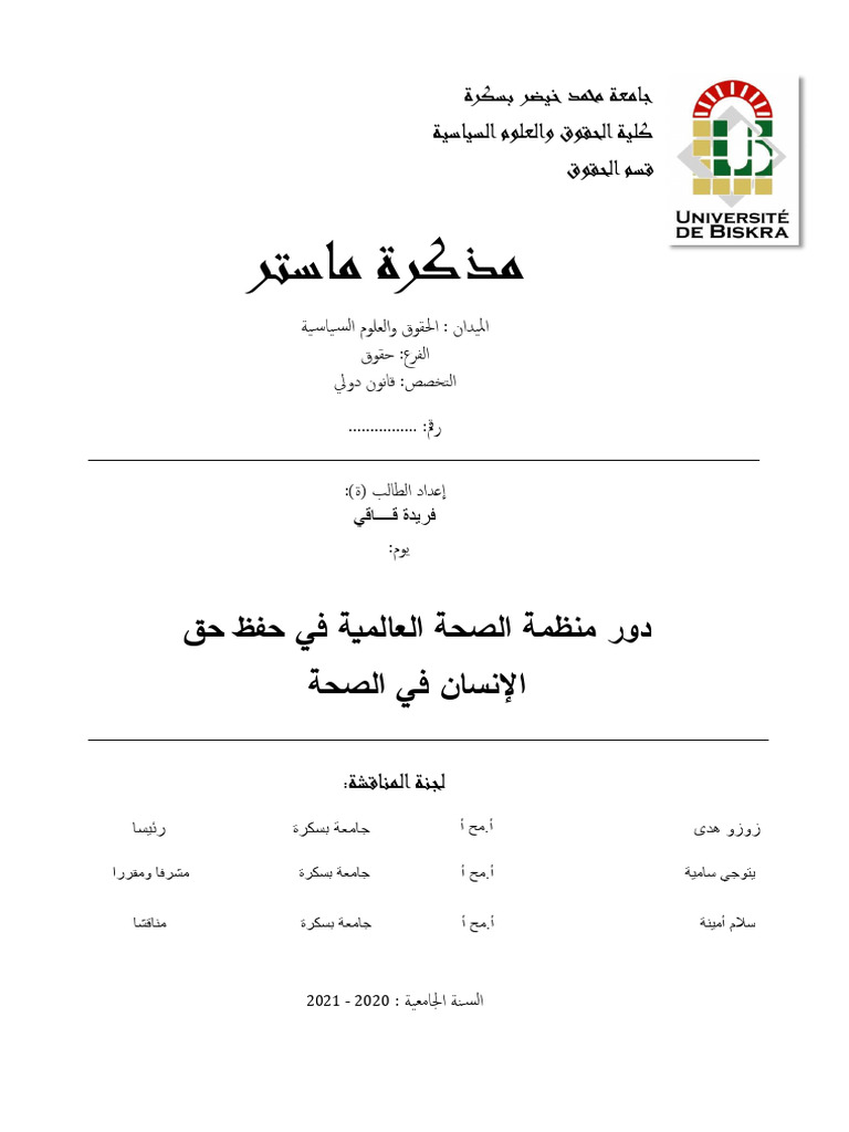 دور منظمة الصحة العالمية في حفظ حق الإنسان في الصحة | PDF