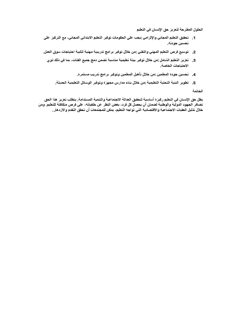 الحلول المقترحة لتعزيز حق الإنسان في التعليم | PDF