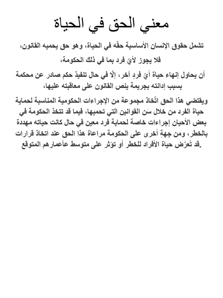 بحث عن حق الانسان في الحياه | PDF