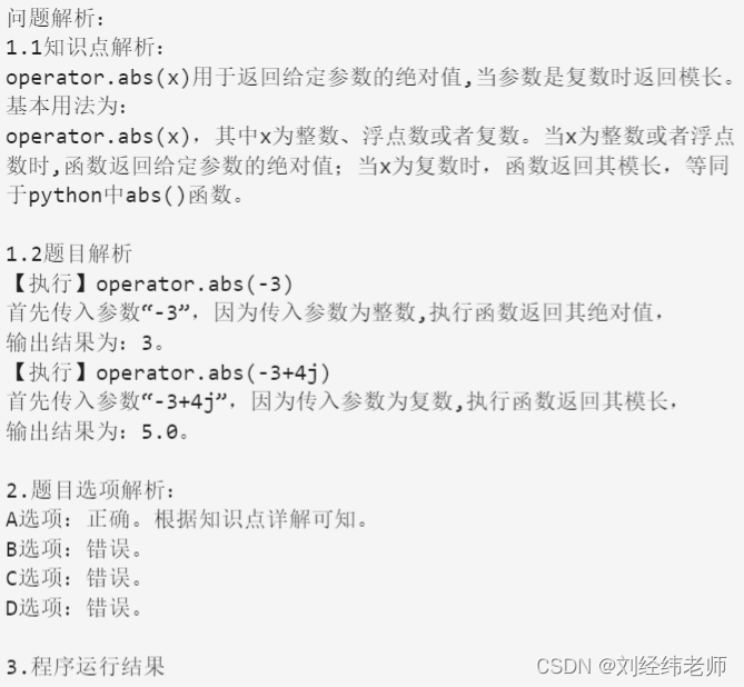 返回x的绝对值 x如果是复数,则返回x的模长 operator.abs(x)-CSDN博客