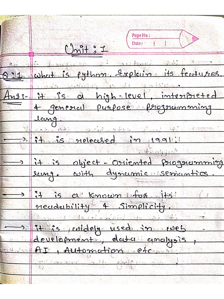 Python Unit 1 - .... - Python Unit 1 Introduction to python Python is a ...