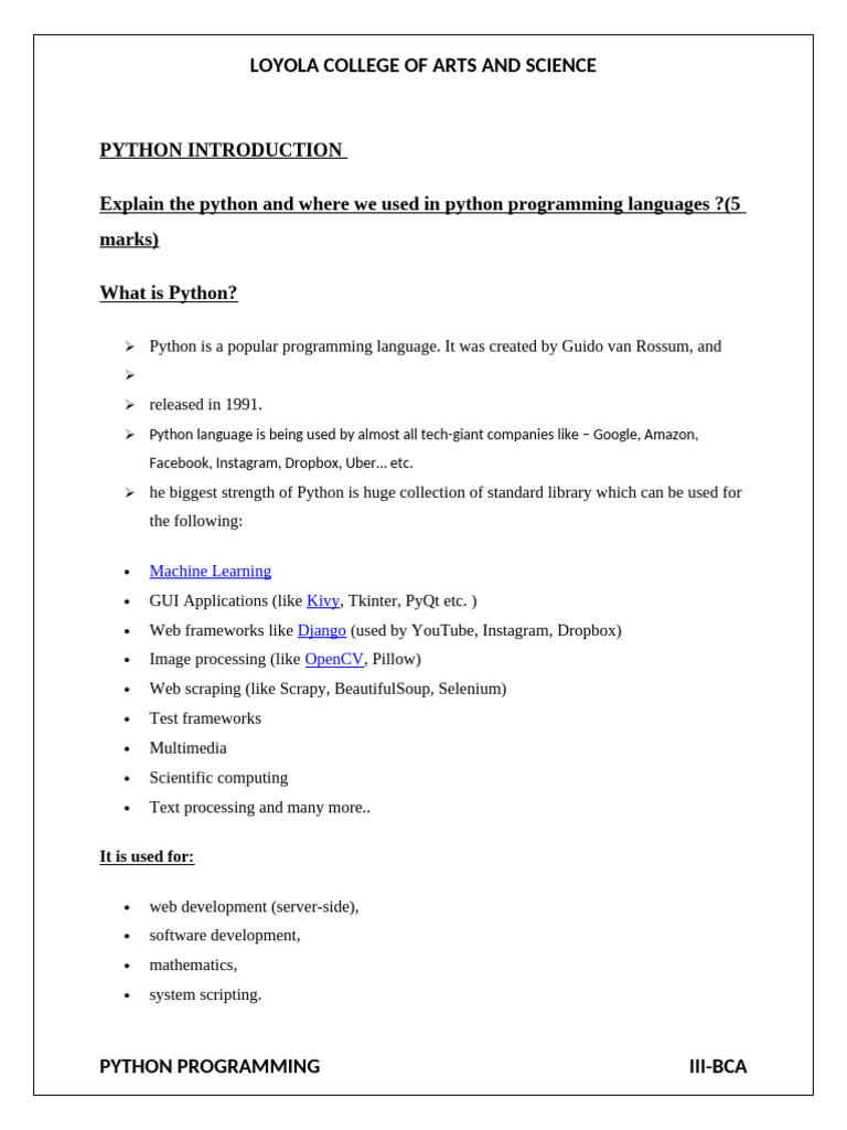 BCA 3rd SEM notes - BCA 3 rd SEM PYTHON PROGRAMMING UNIT 1 Python ...