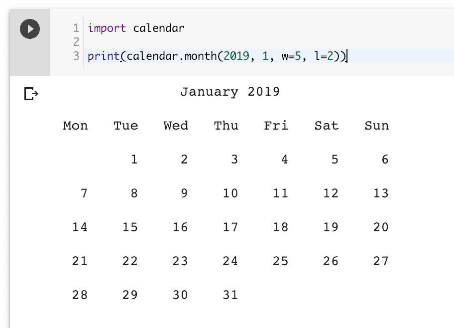 【2行で簡単】Pythonカレンダー表示プログム2018年版を作ろう(Google Colaboratory - Jupyterノートブック版 ...