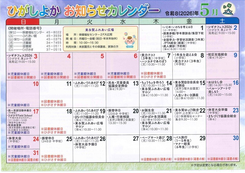 お知らせカレンダーR8.5月号 | つながる東与賀