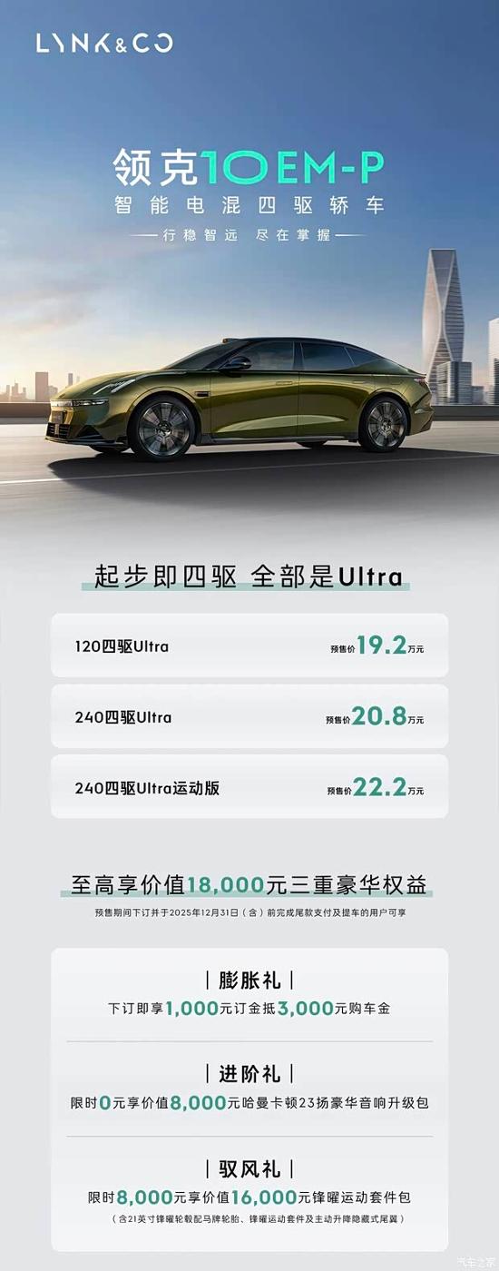 领克10 EM-P上市全系标配四驱+高阶智驾 20万级插混市场迎来技术平权新标杆_轿车_什么值得买