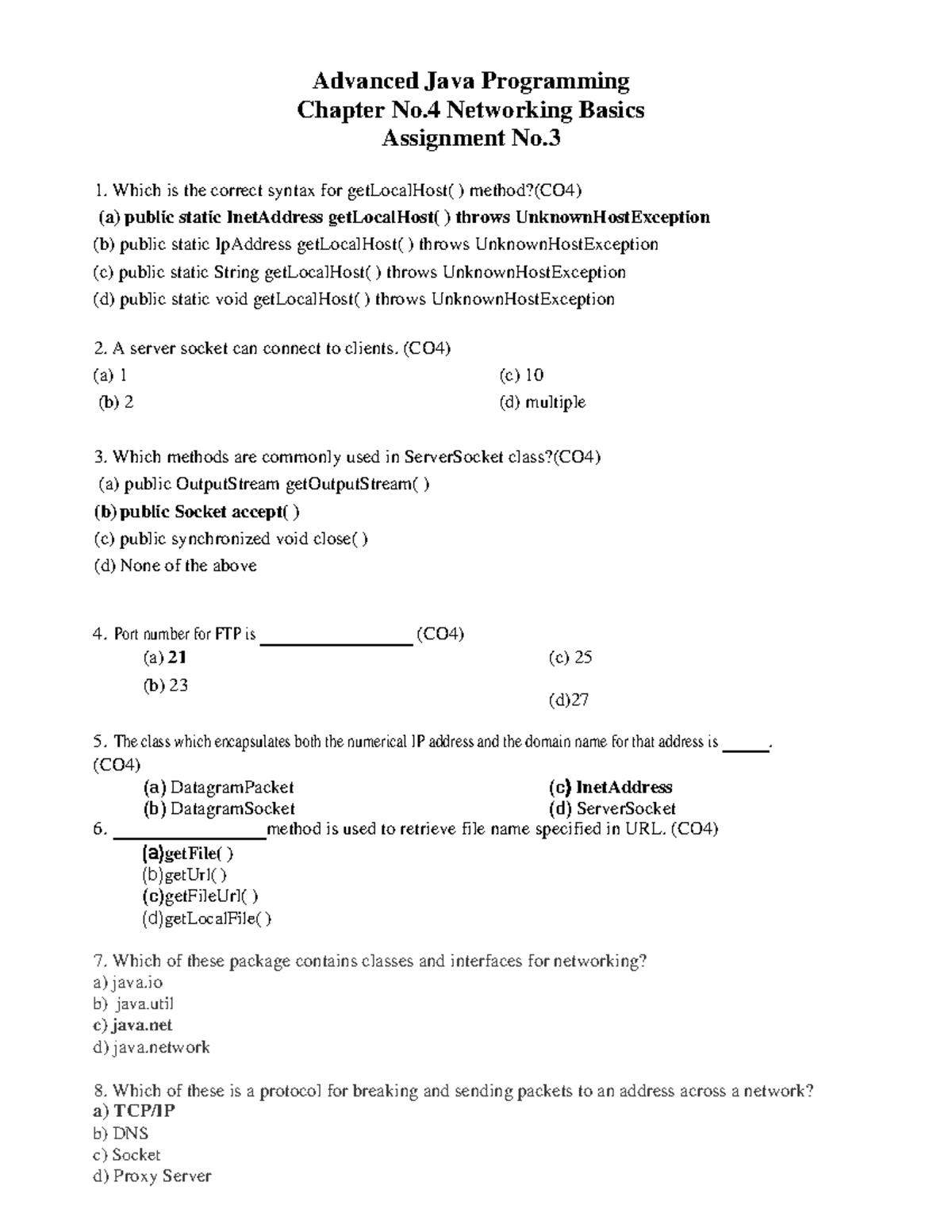 Assignment No. 3 - Advanced Java Programming Chapter No Networking ...