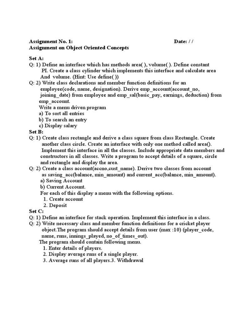 Assignment No. 1: Date: / / Assignment On Object Oriented Concepts Set ...