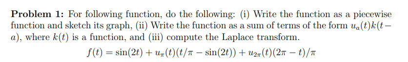 Solved Problem 1: For following function, do the following: | Chegg.com