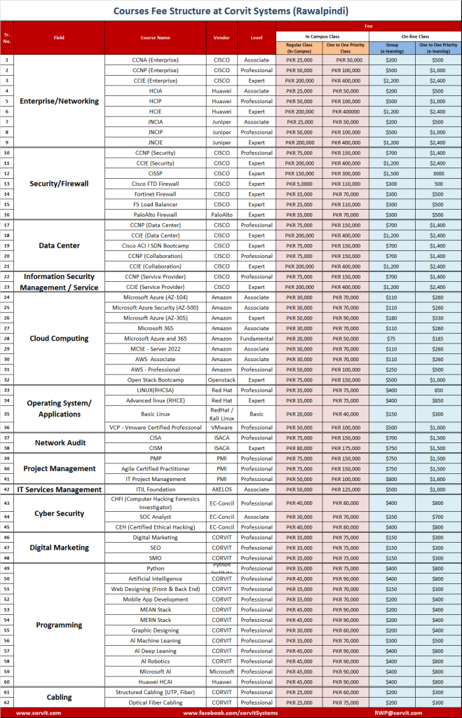 Rawalpindi Fee | Corvit Systems