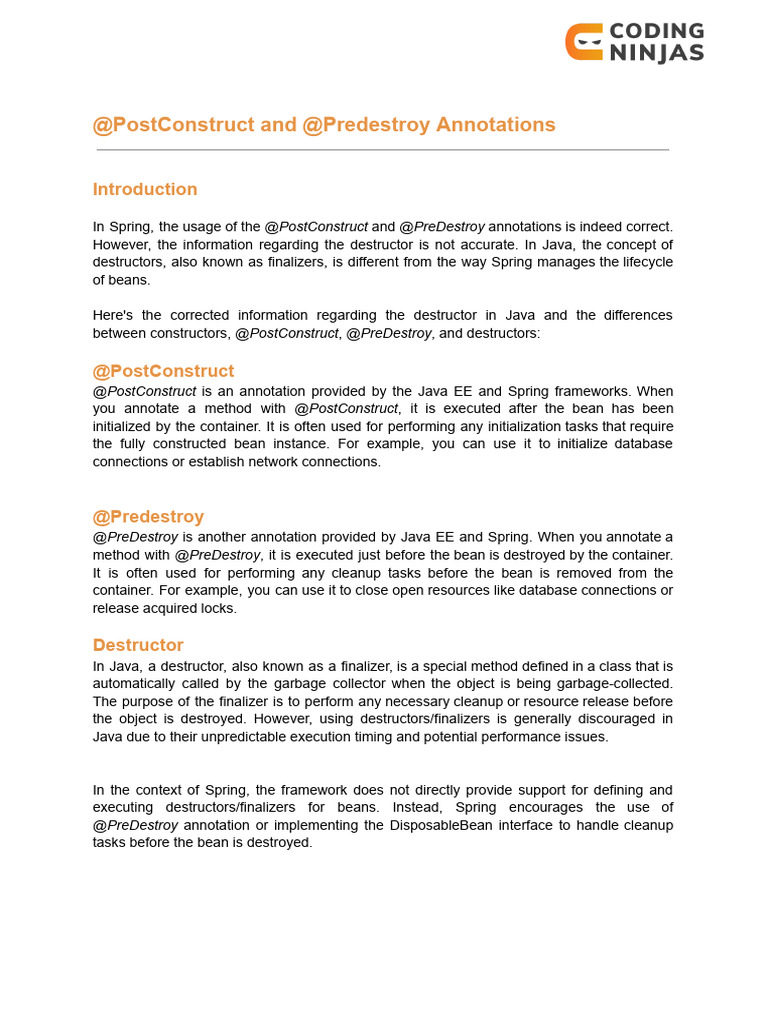 @PostConstruct and @predestroy Annotations | PDF | Method (Computer ...