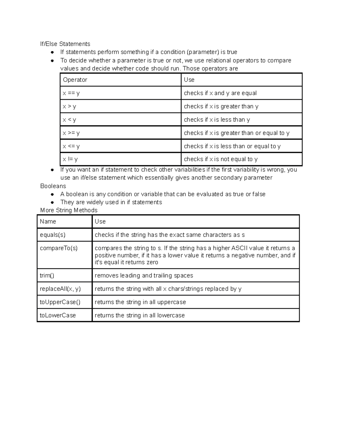 APCS Unit 05 06 Notes - Dr. Joseph Wolf - If/Else Statements If ...