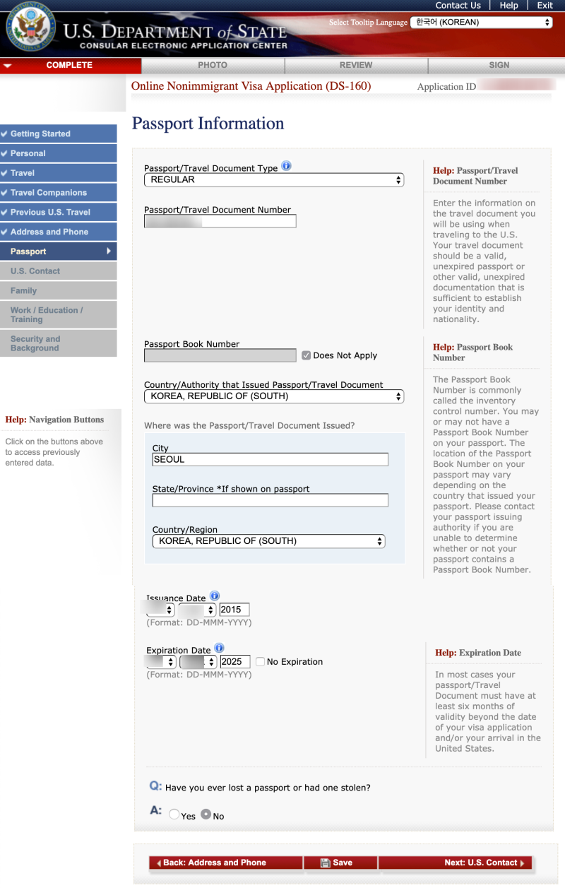(5단계) SWBTS 입학하기! 미국 대사관 인터뷰 준비하기! ④ DS-160 작성 방법 : 네이버 블로그