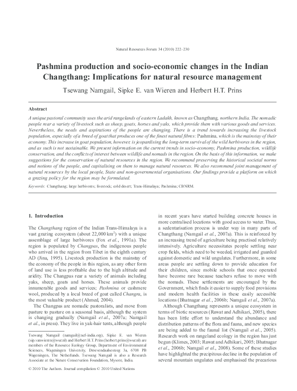 (PDF) Pashmina production and socio‐economic changes in the Indian ...