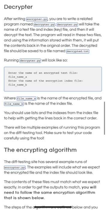 Solved Decrypter After writing encrypter.py, you are to | Chegg.com