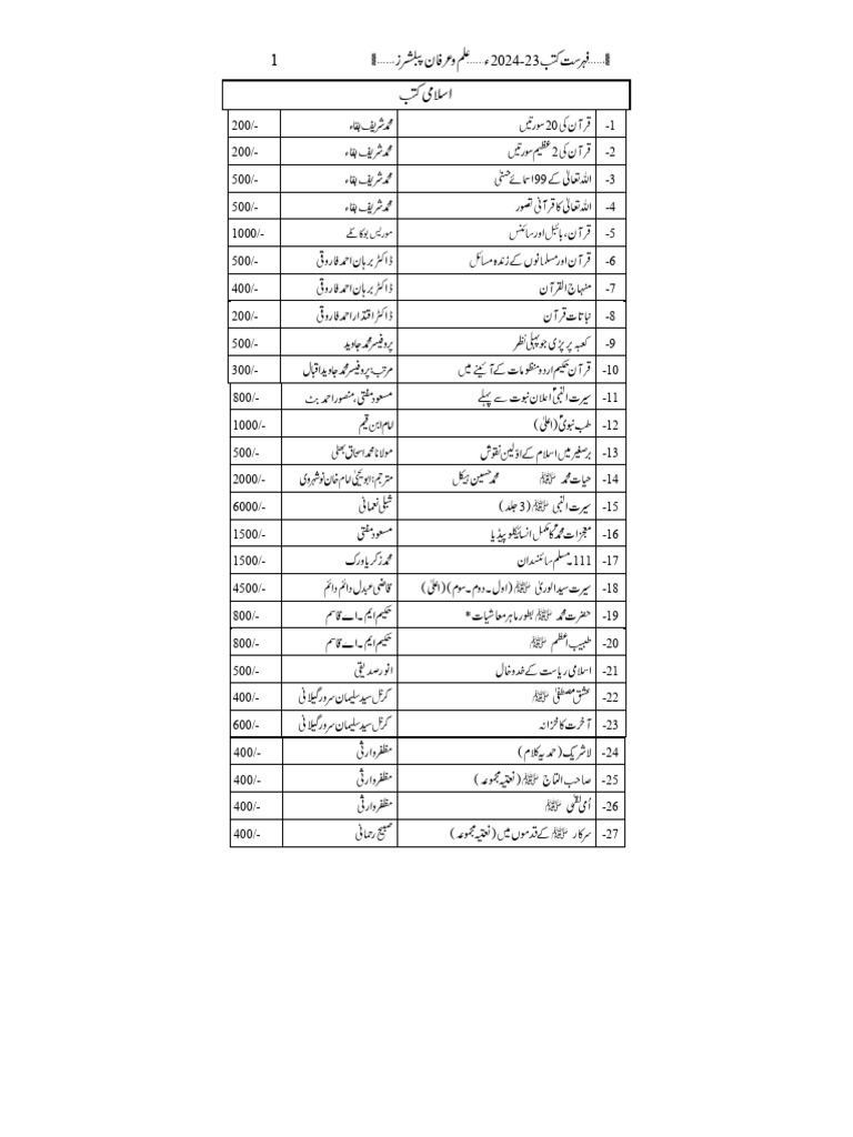 Book List Ilm-o-Irfan Publishers (2023-2024) | PDF