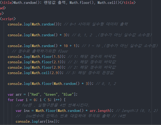 JavaScript `Math.random()`과 `Math.floor()` 활용
