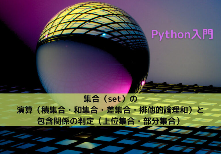 【Python】集合(set)の演算(積集合・和集合・差集合・排他的論理和)と包含関係の判定(上位集合・部分集合)|Python Tech