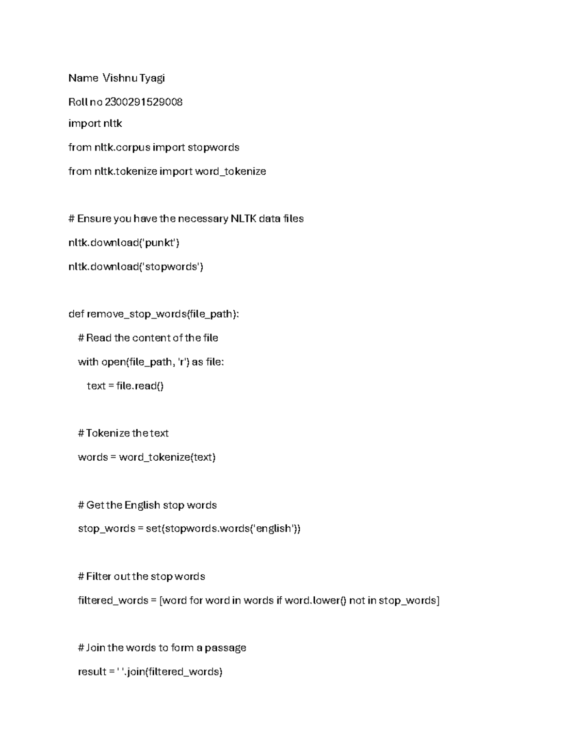 Lab 7-1 - Stop Words Removal in NLTK Python Program - Studocu