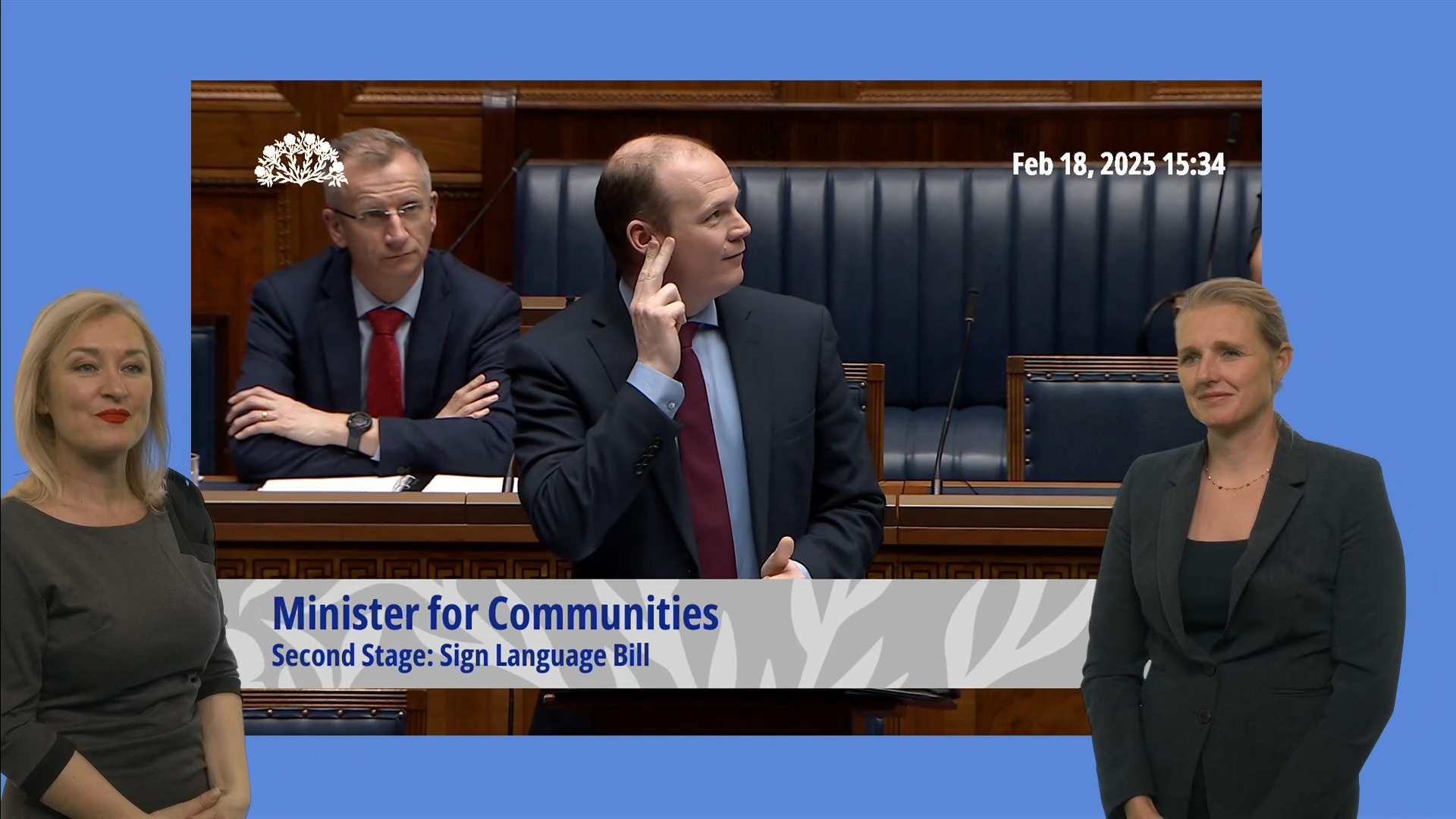 Based on this image's title: “Special moment hailed with passing of Northern Ireland Sign Language ...