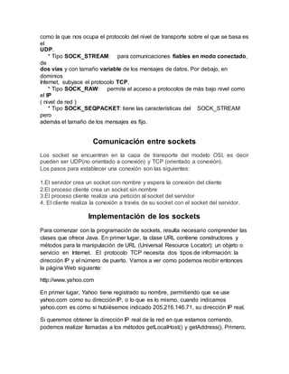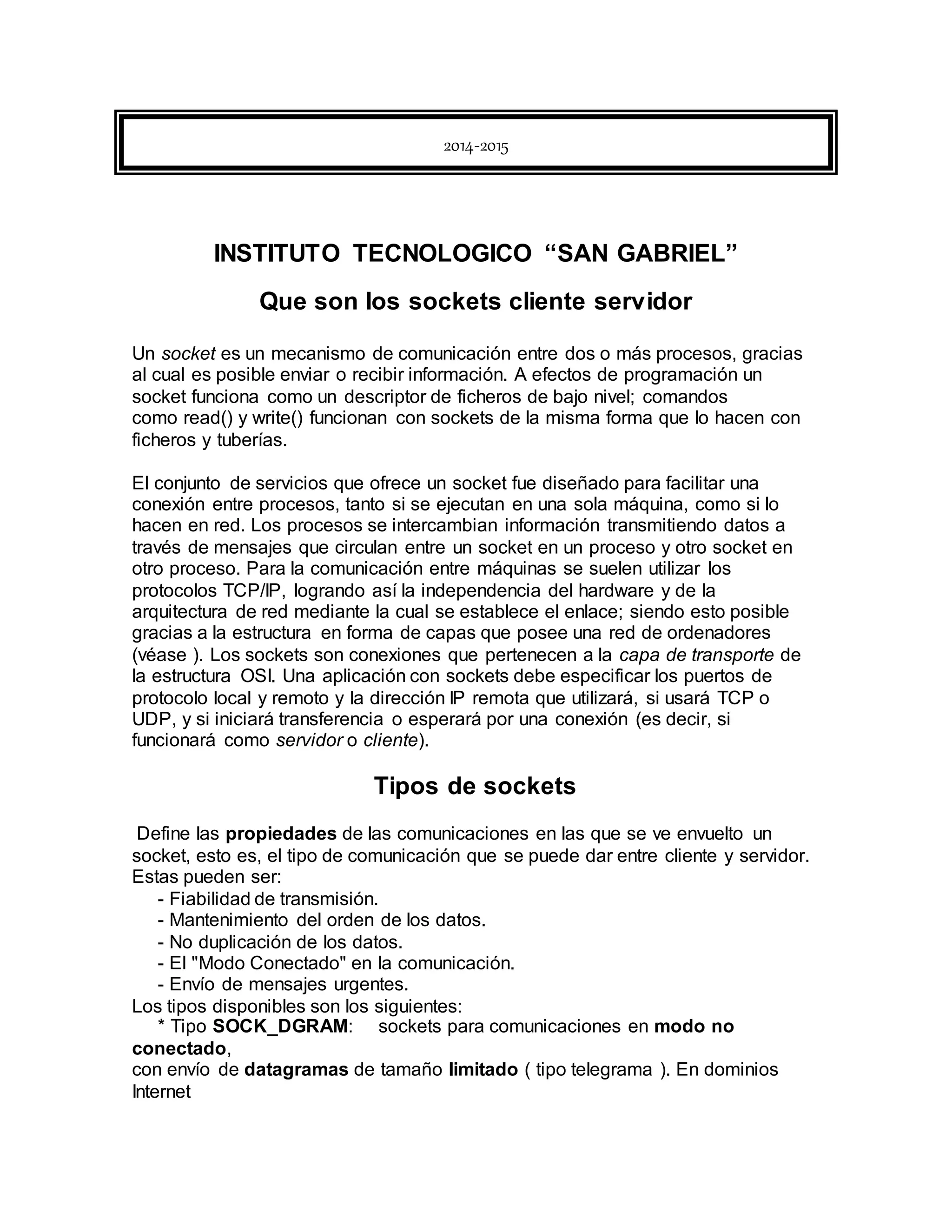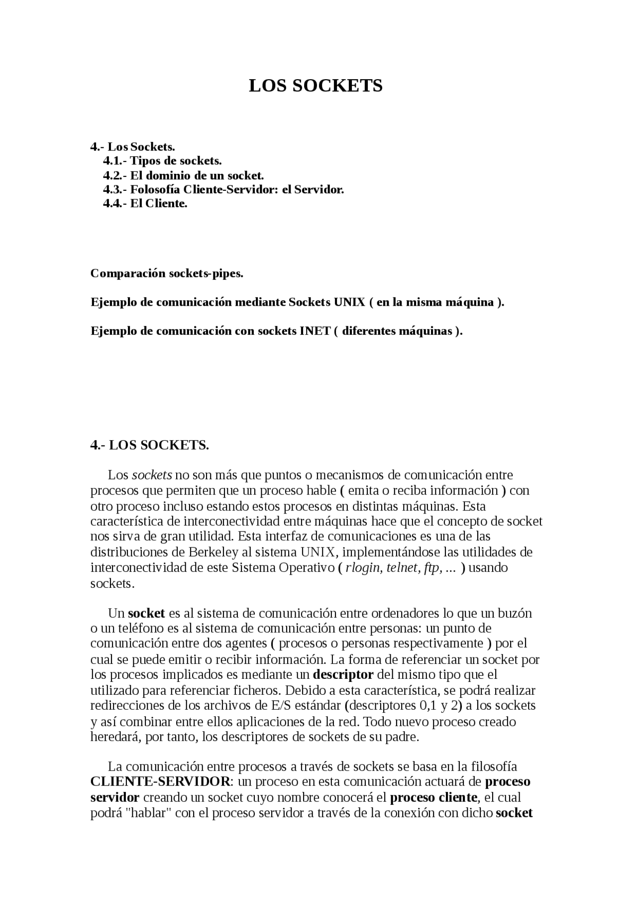 LOS SOCKETS - Apuntes de Ingeniería Infórmatica - Docsity