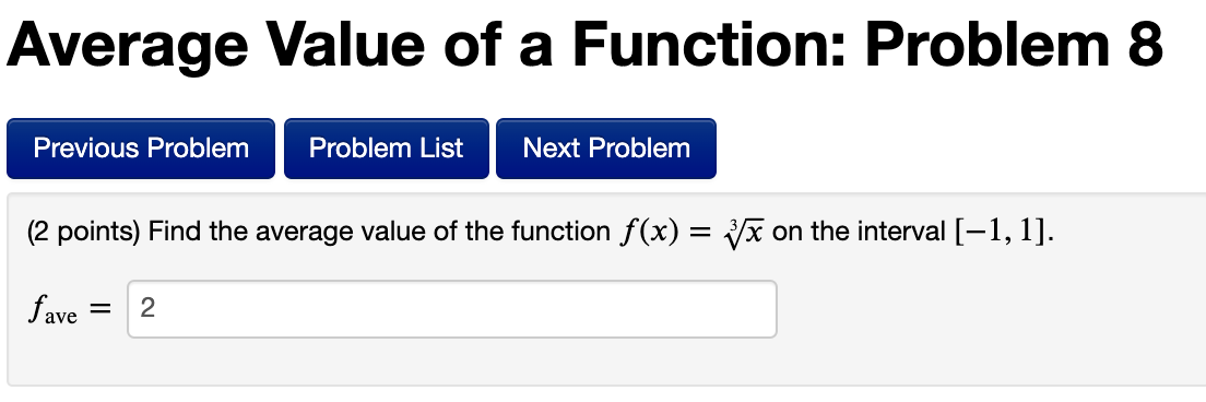 Solved Average Value of a Function: Problem 11 Previous | Chegg.com