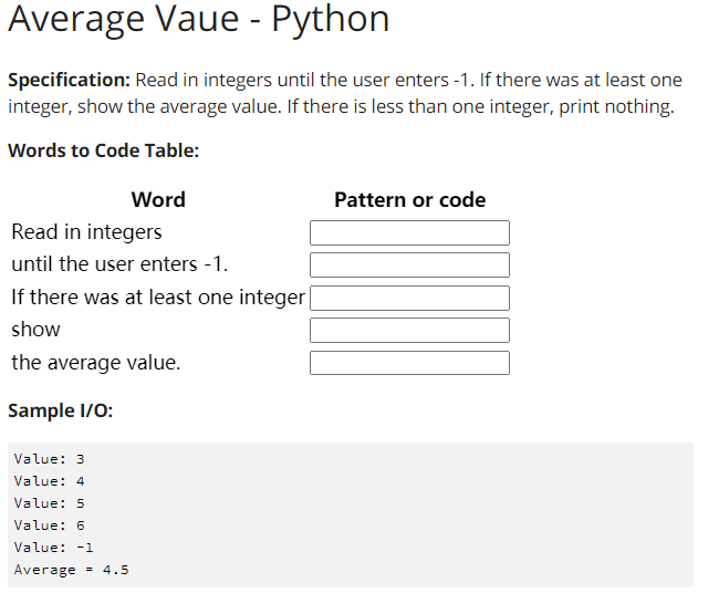 Solved Average Vaue - Python Specification: Read in integers | Chegg.com
