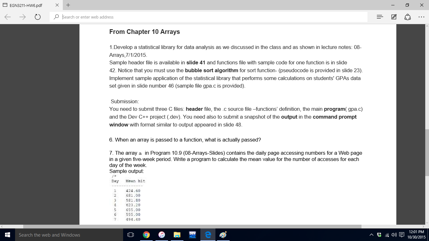 Solved From Chapter 10 Arrays Develop a statistical library | Chegg.com