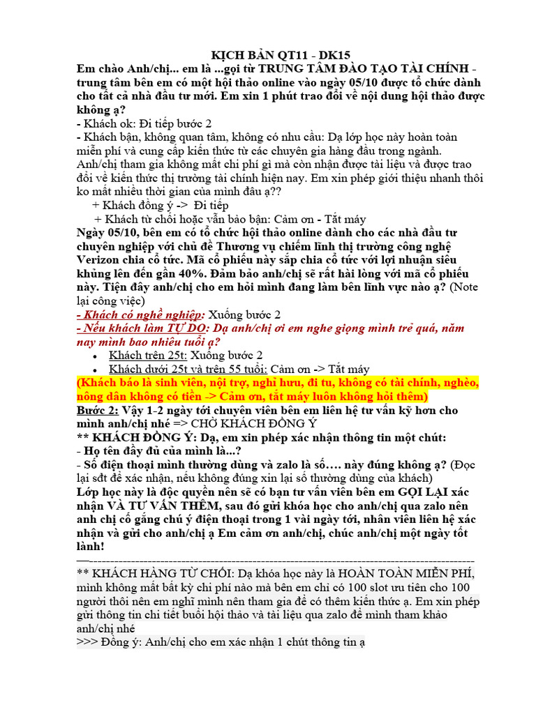 KỊCH BẢN QT11 | PDF