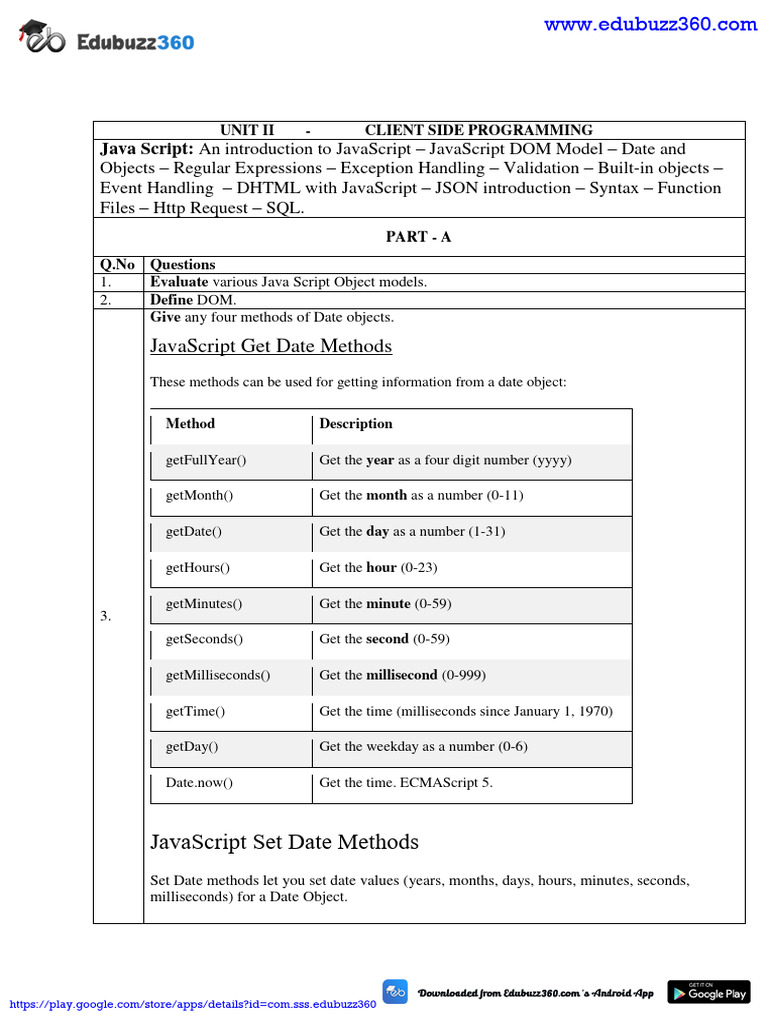 Unit 3: Client-Side Programming with JavaScript (CS101) - Studocu