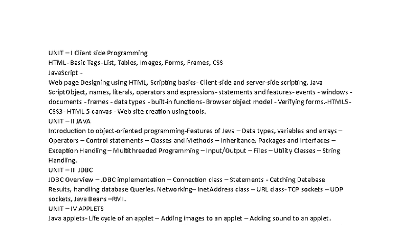 UNIT II: Client-Side Programming with JavaScript and JSON - Studocu