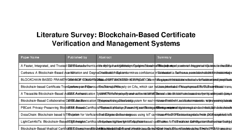 Literature Survey: Blockchain Certificate Verification Systems - Studocu