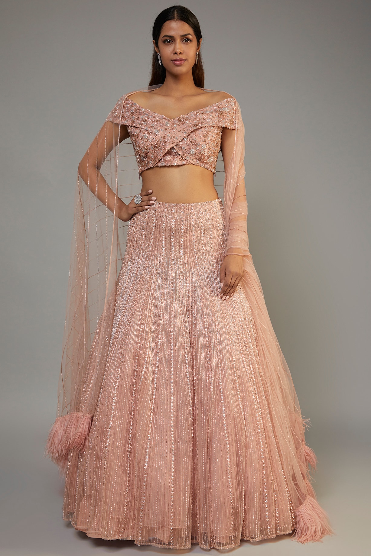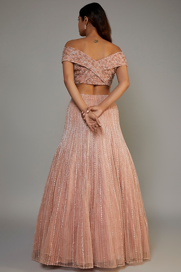 Light Onion Pink Net Embroidered Bridal Lehenga Set by COUTURE BY ...