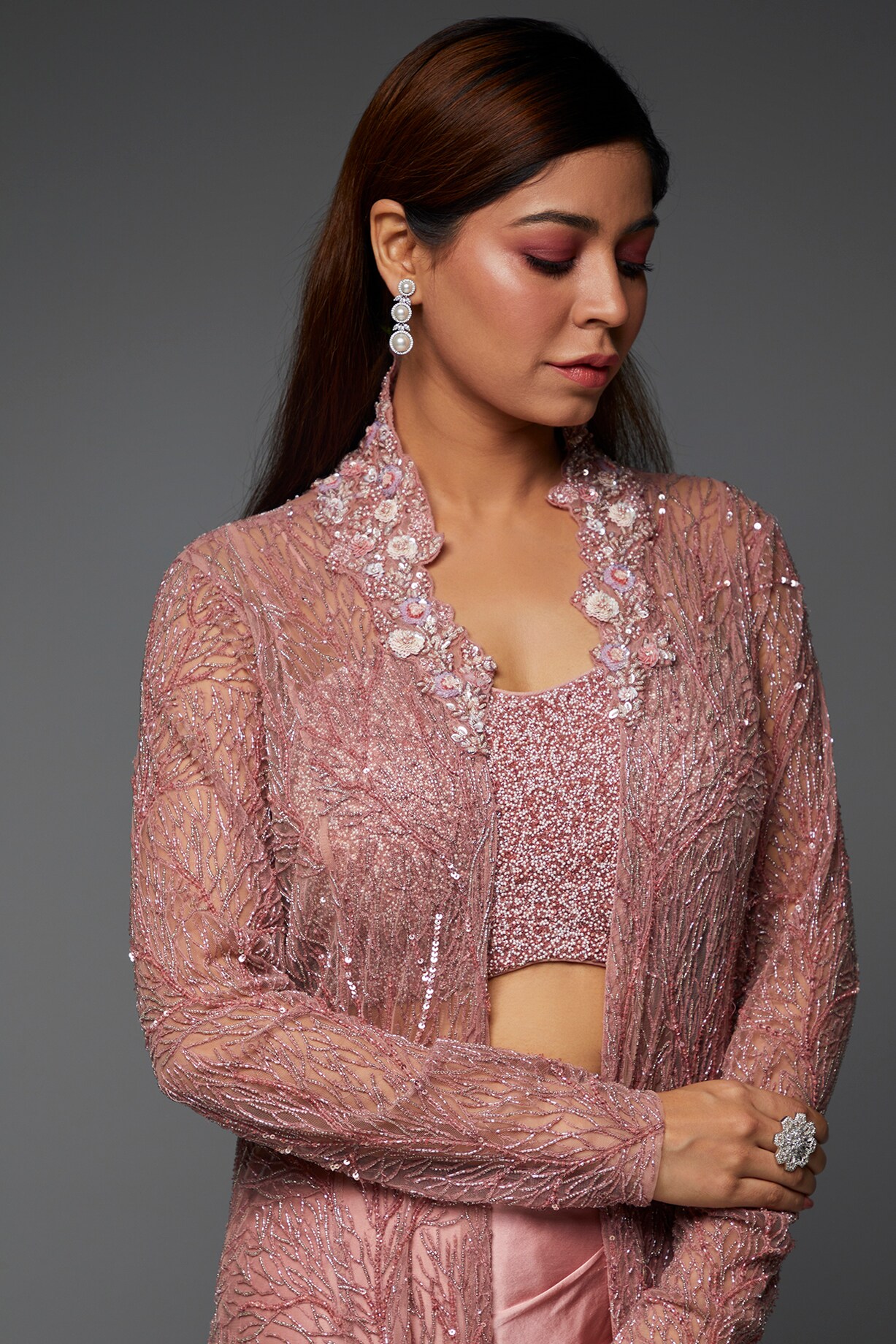 Blush Pink Embroidered Kali Jacket Set by COUTURE BY NIHARIKA at Pernia ...