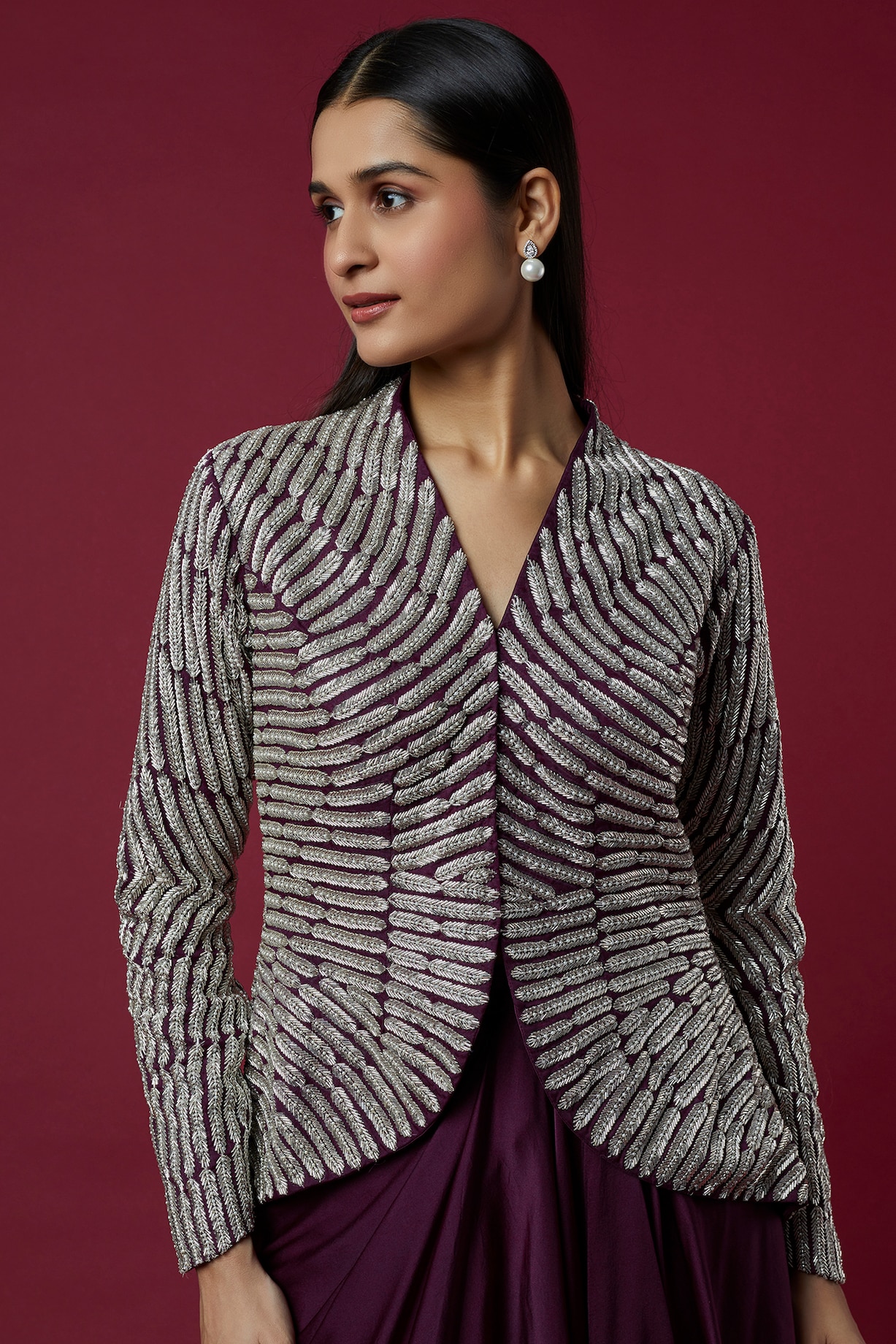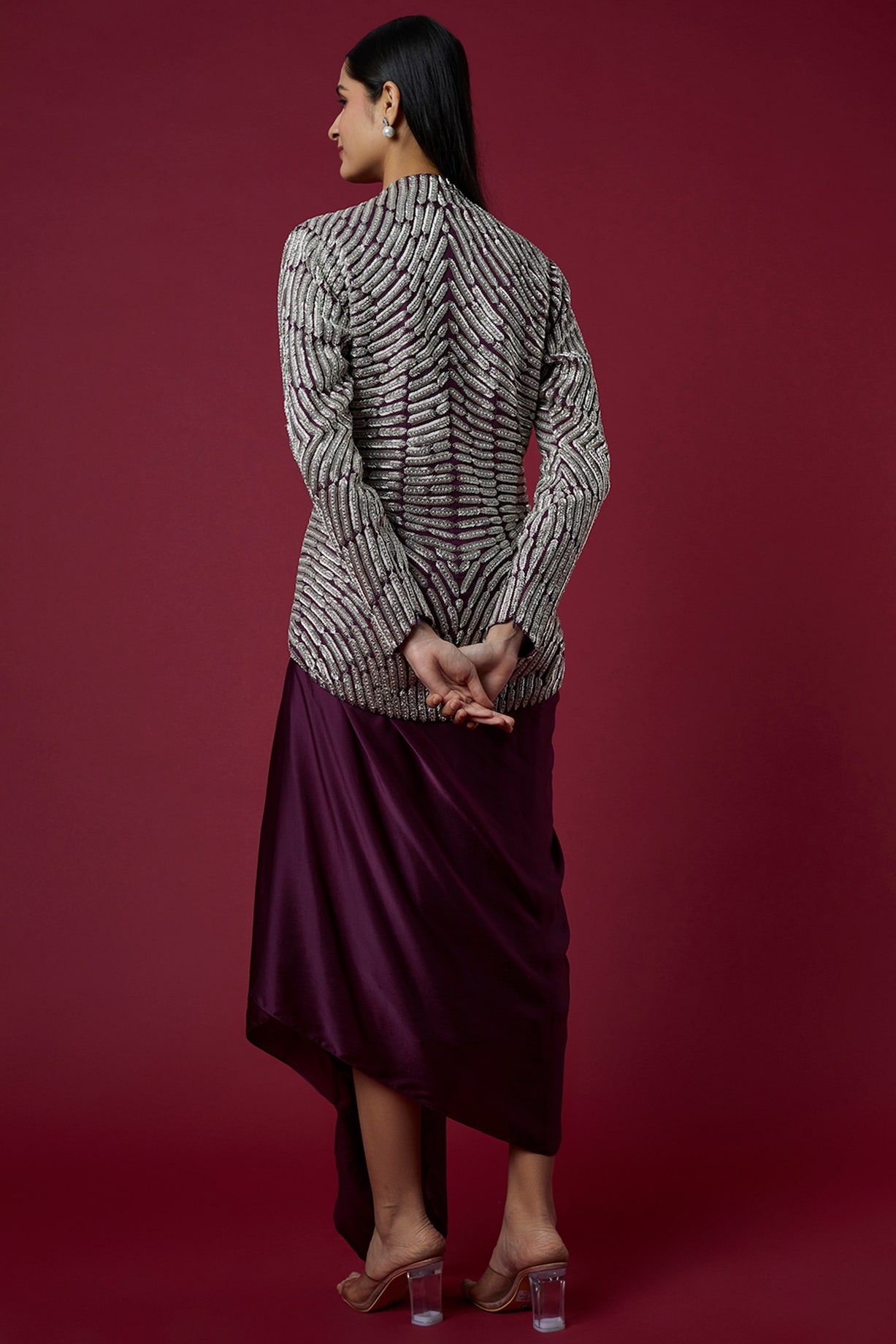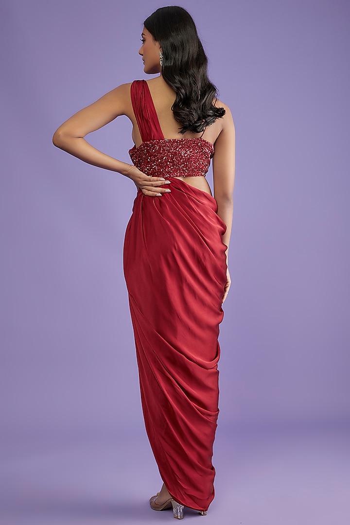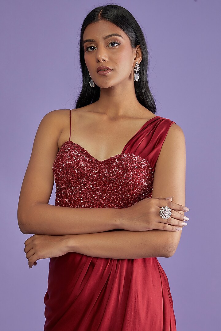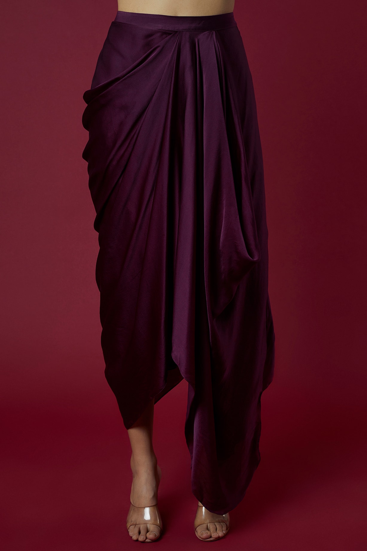 Wine Pure Satin Draped Skirt Set Design by COUTURE BY NIHARIKA at ...