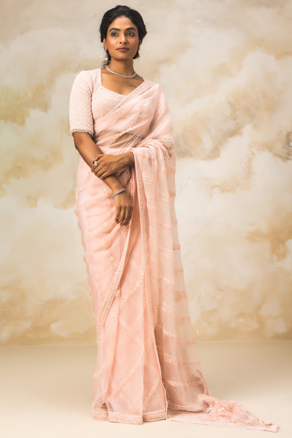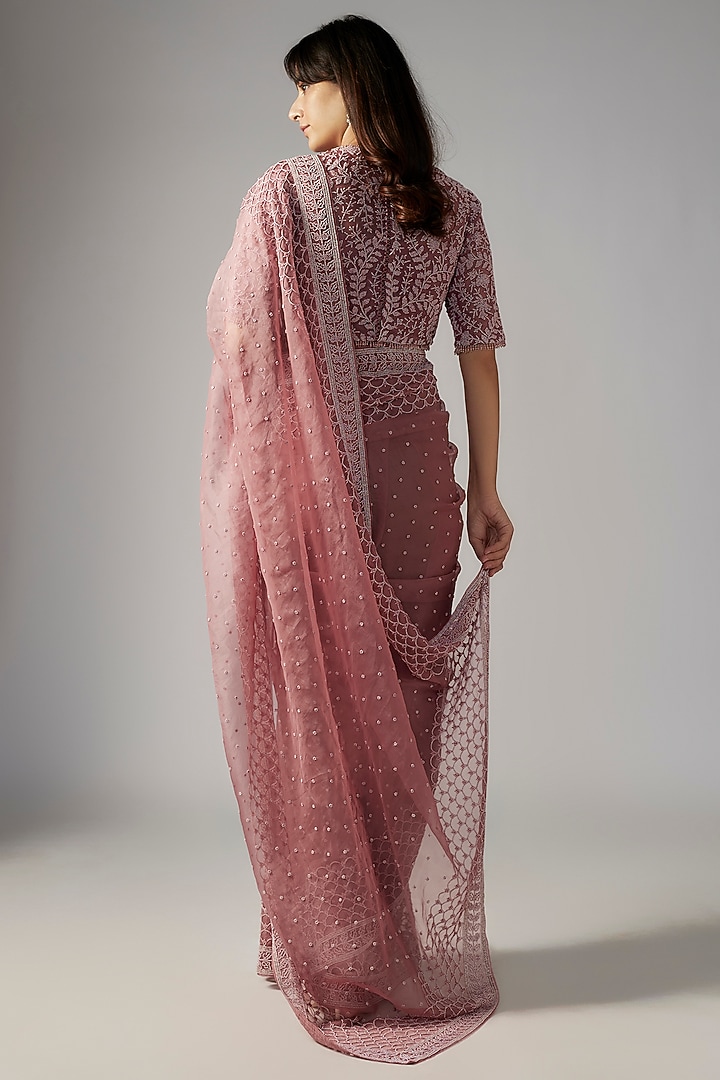 Dusty Pink Organza Chita Work Saree Set by COUTURE BY NIHARIKA at ...