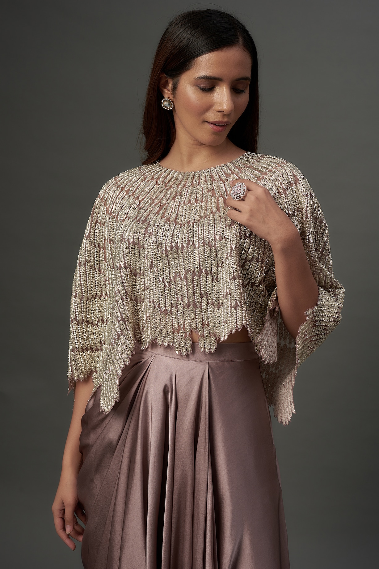 Dusty Purple Pure Satin & Organza Embroidered Cape Set by COUTURE BY ...