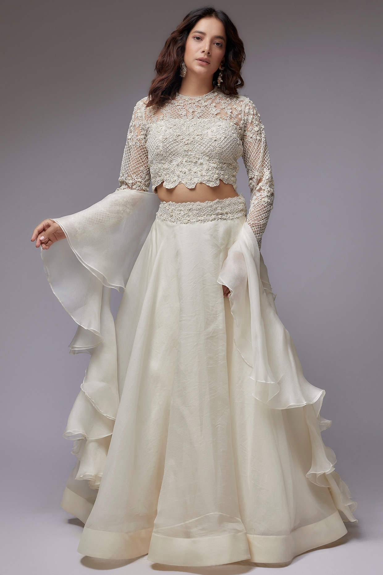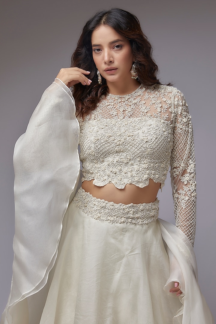 Ivory Organza Wedding Lehenga Set by COUTURE BY NIHARIKA at Pernia's ...