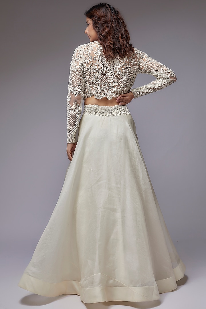 Buy Ivory Net, Viscose Pearls, Embroidery, Beads Liora Hand Lehenga Set ...