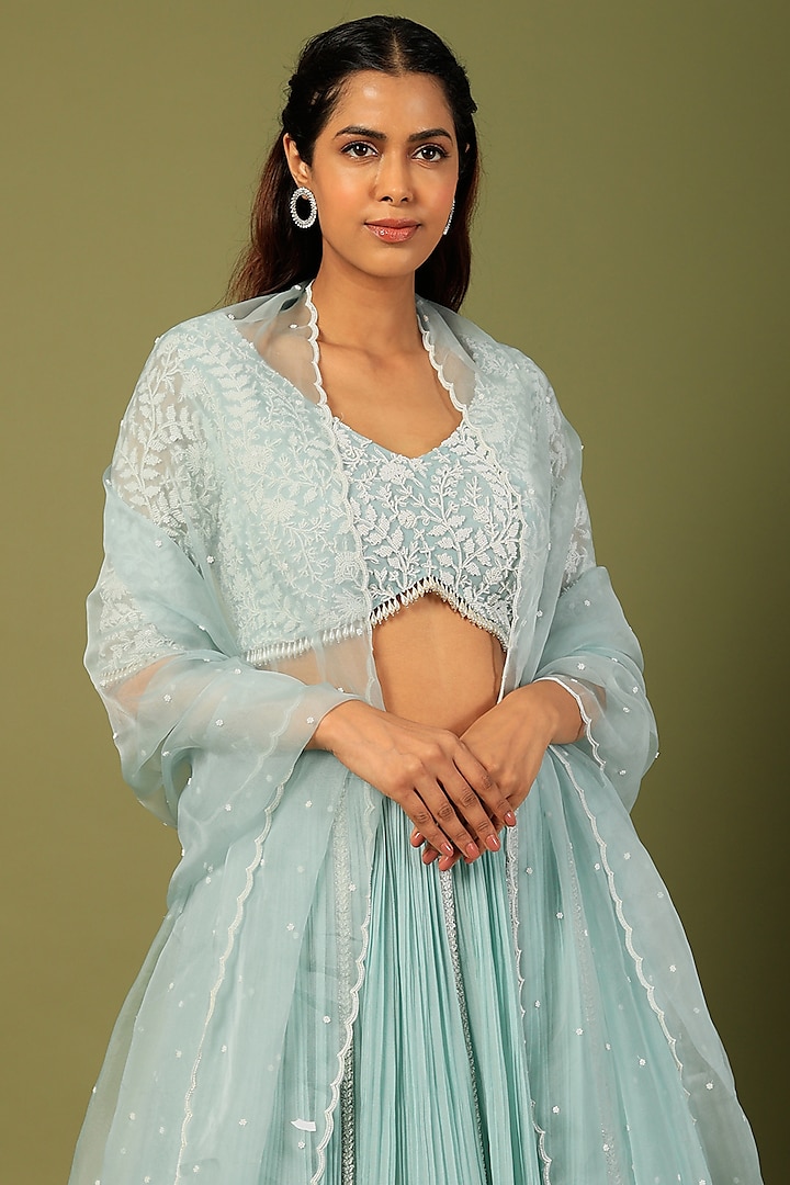 Sky Blue Organza & Chiffon Wedding Lehenga Set by COUTURE BY NIHARIKA ...