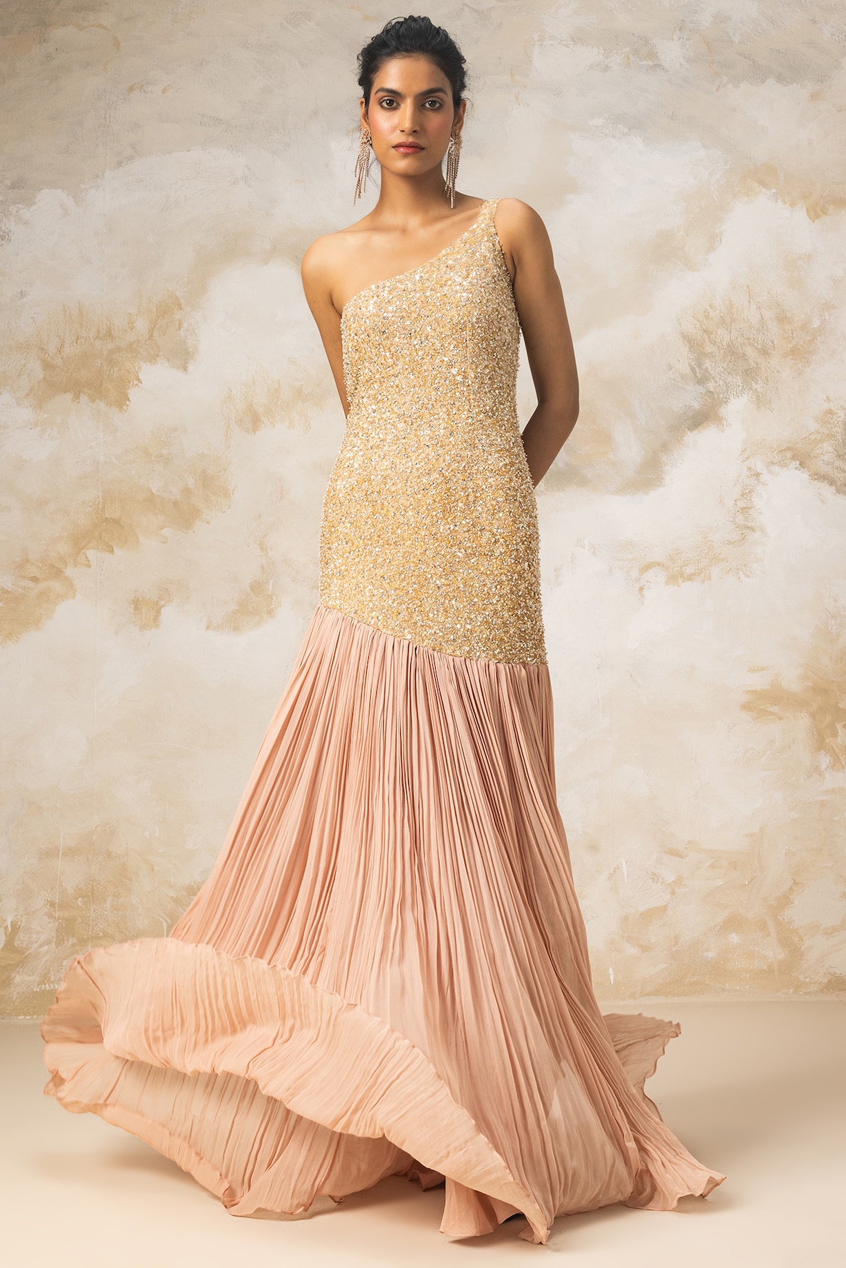 Peach Embroidered Gown by COUTURE BY NIHARIKA at Pernia's Pop Up Shop 2024