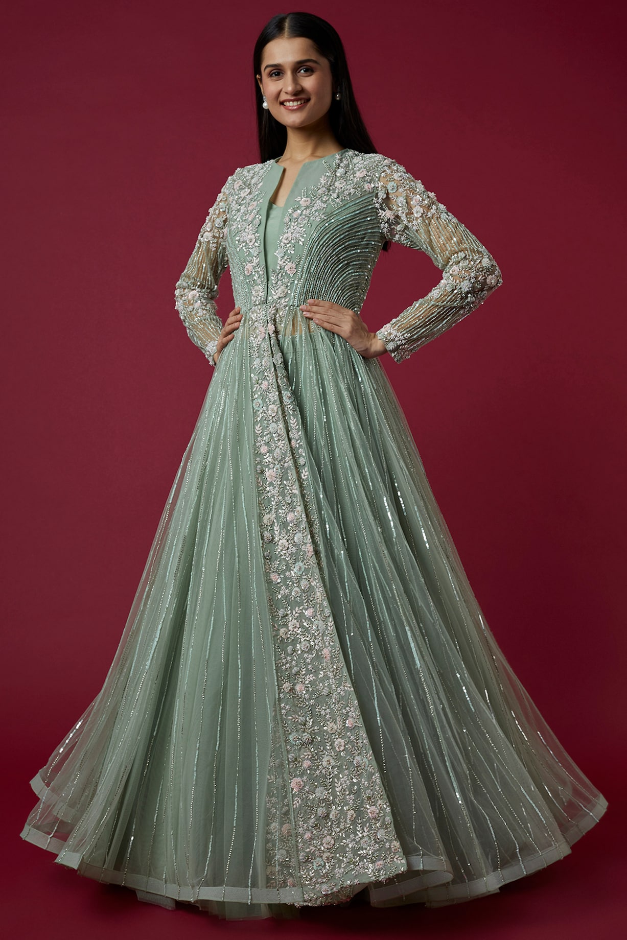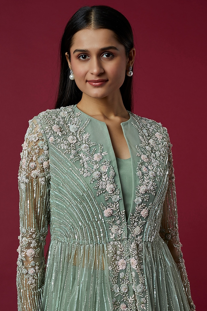 Mint Green Floral Embroidered Jacket Set by COUTURE BY NIHARIKA at ...